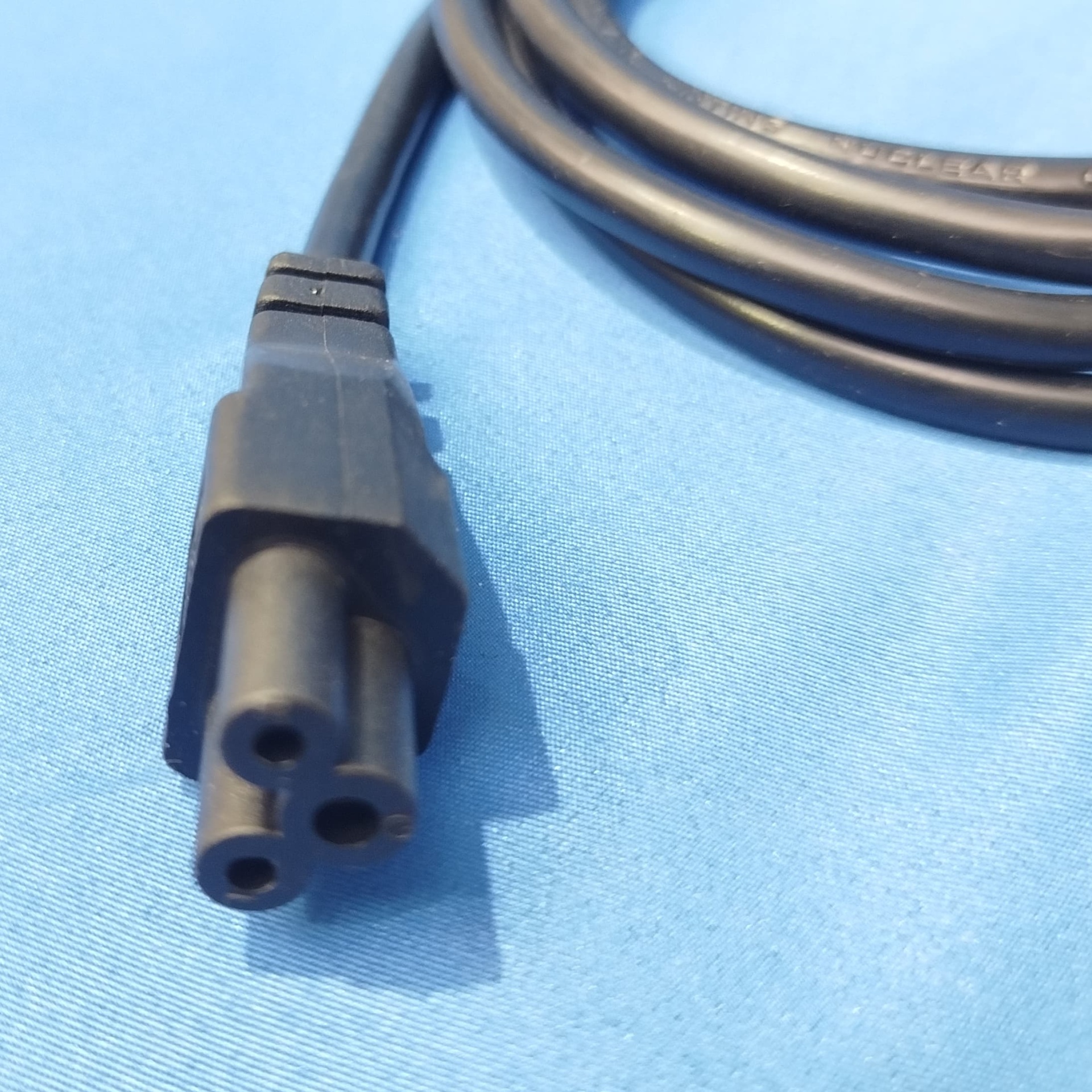 Cabo de alimentação preto com ficha macho tipo europeu e conector IEC 60320 C5